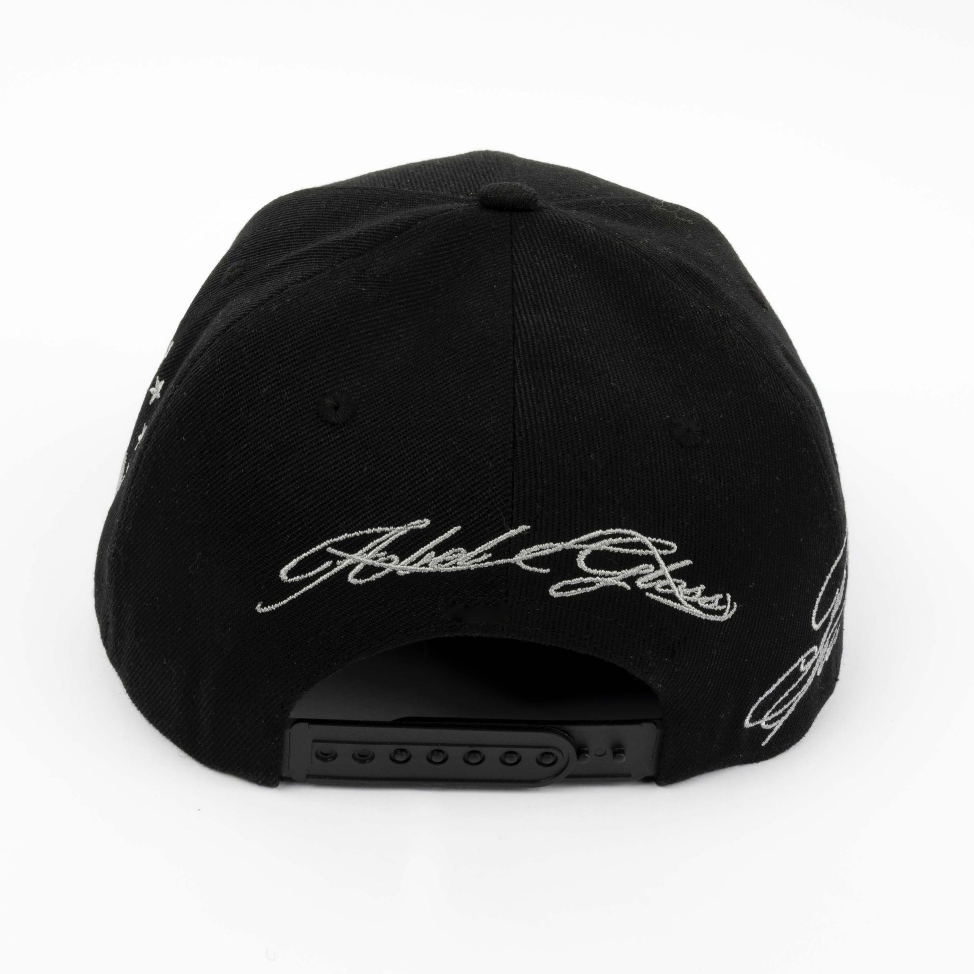 “Abel Gloss” signature and “Never Surrender” embroidery